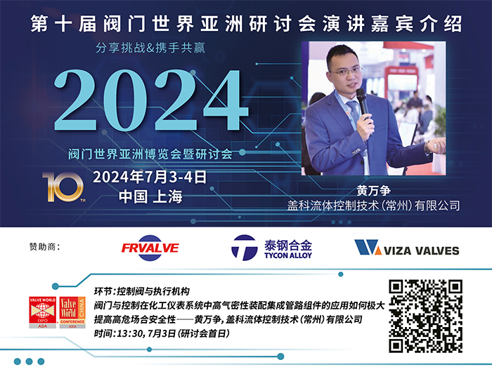 GEKO閥門與控制中國(guó)分公司總經(jīng)理黃萬(wàn)爭(zhēng)榮幸成為2024研討會(huì)演講嘉賓,在控制閥與執(zhí)行機(jī)構(gòu)環(huán)節(jié),闡述:閥門與控制在化工儀表系統(tǒng)中高氣性裝配集成管路組件的應(yīng)用如何極大提高高危場(chǎng)合安全性...